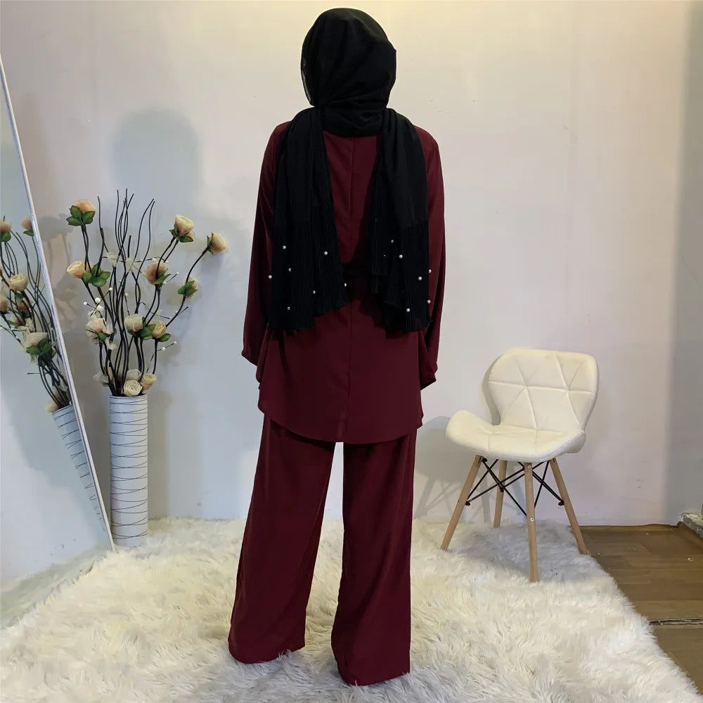La combinaison de la tunique et du pantalon large de l’Abaya Deux Pièces offre à la fois confort et style. Ce type d’ensemble est idéal pour créer une tenue polyvalente qui vous permet de bouger librement tout en restant chic. Vous pouvez facilement l’associer à différents vêtements et accessoires, transformant ainsi chaque tenue selon vos envies.