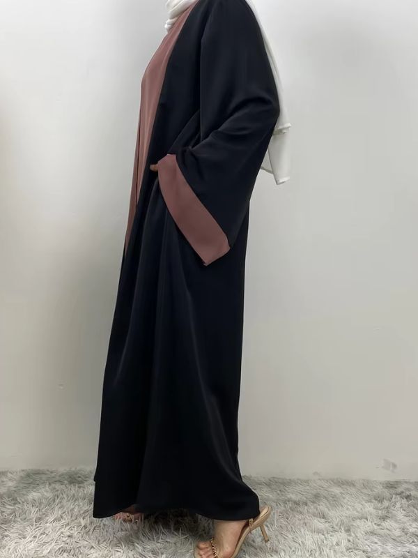 Craquez pour notre Abaya Dubai Kimono Noir Et Rose Poudré