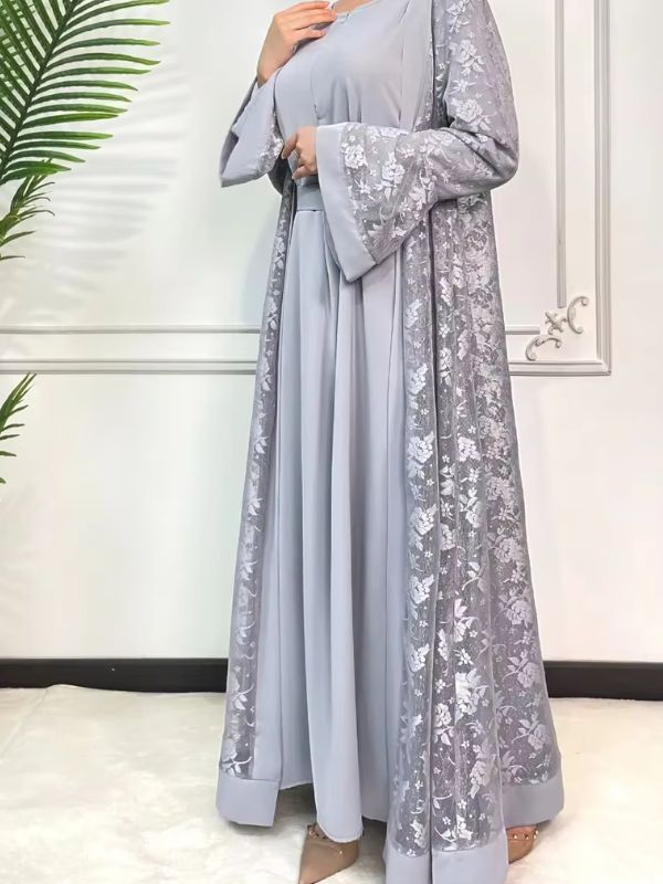 L’essentiel : Abaya Dubai Luxe Gris Perle En Dentelle