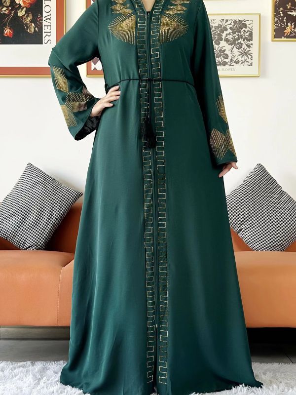 Son design raffiné et sa teinte vert émeraude en font un choix parfait pour toutes les femmes cherchant à rehausser leur garde-robe. Ce modèle met en lumière l’importance culturelle de l’abaya, tout en s’adaptant aisément à diverses occasions, que ce soit un mariage, une soirée élégante ou une sortie décontractée entre amis.