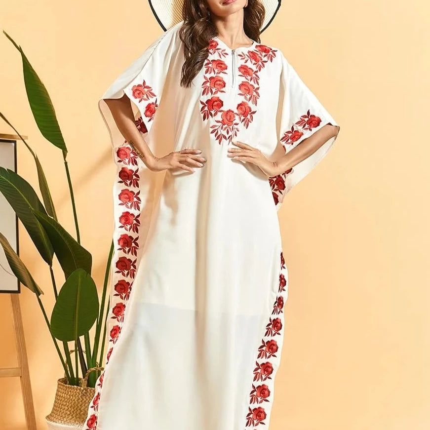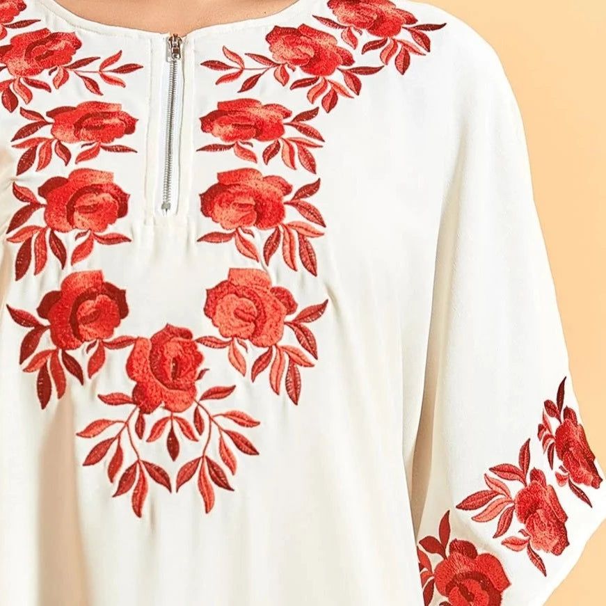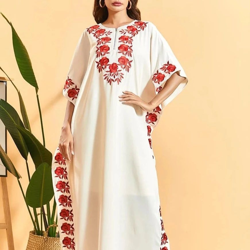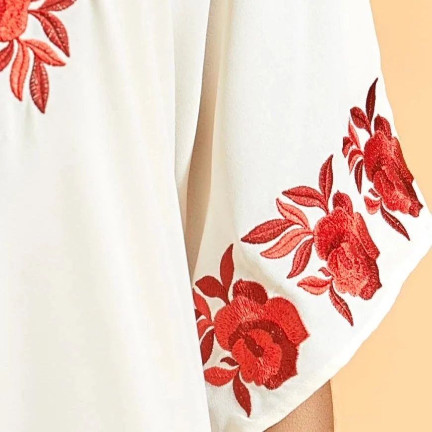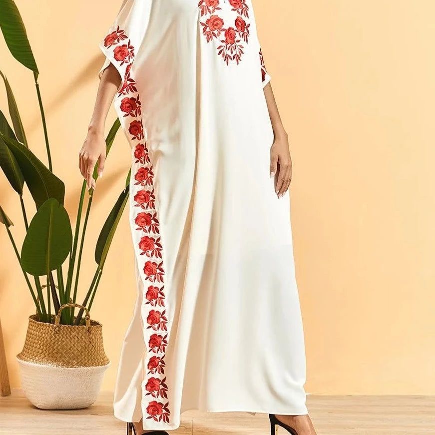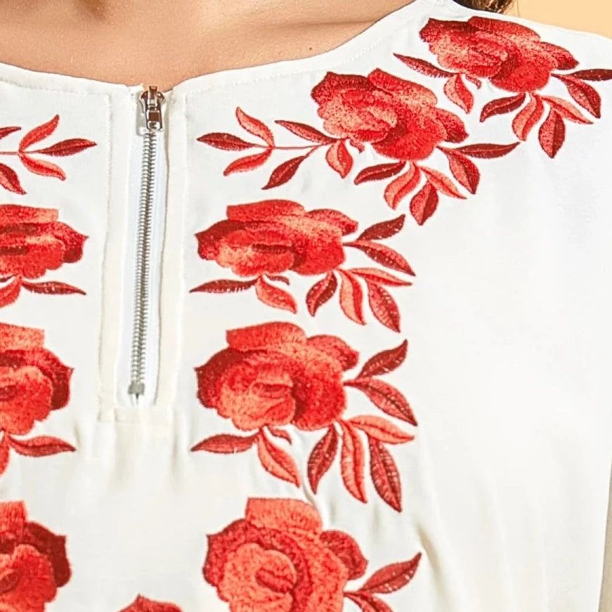 • Décoration broderies en roses rouges : Évoque la délicatesse et la romance.