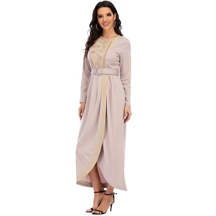 Avec son design portefeuille innovant, la Robe Abaya Dubai apporte une touche contemporaine à toute garde-robe. Sa broderie délicate sur la poitrine se distingue visuellement, captivant les regards et ajoutant une note d’originalité à votre tenue. En optant pour cette robe tendance, vous choisissez de vous démarquer avec élégance lors de chaque sortie.