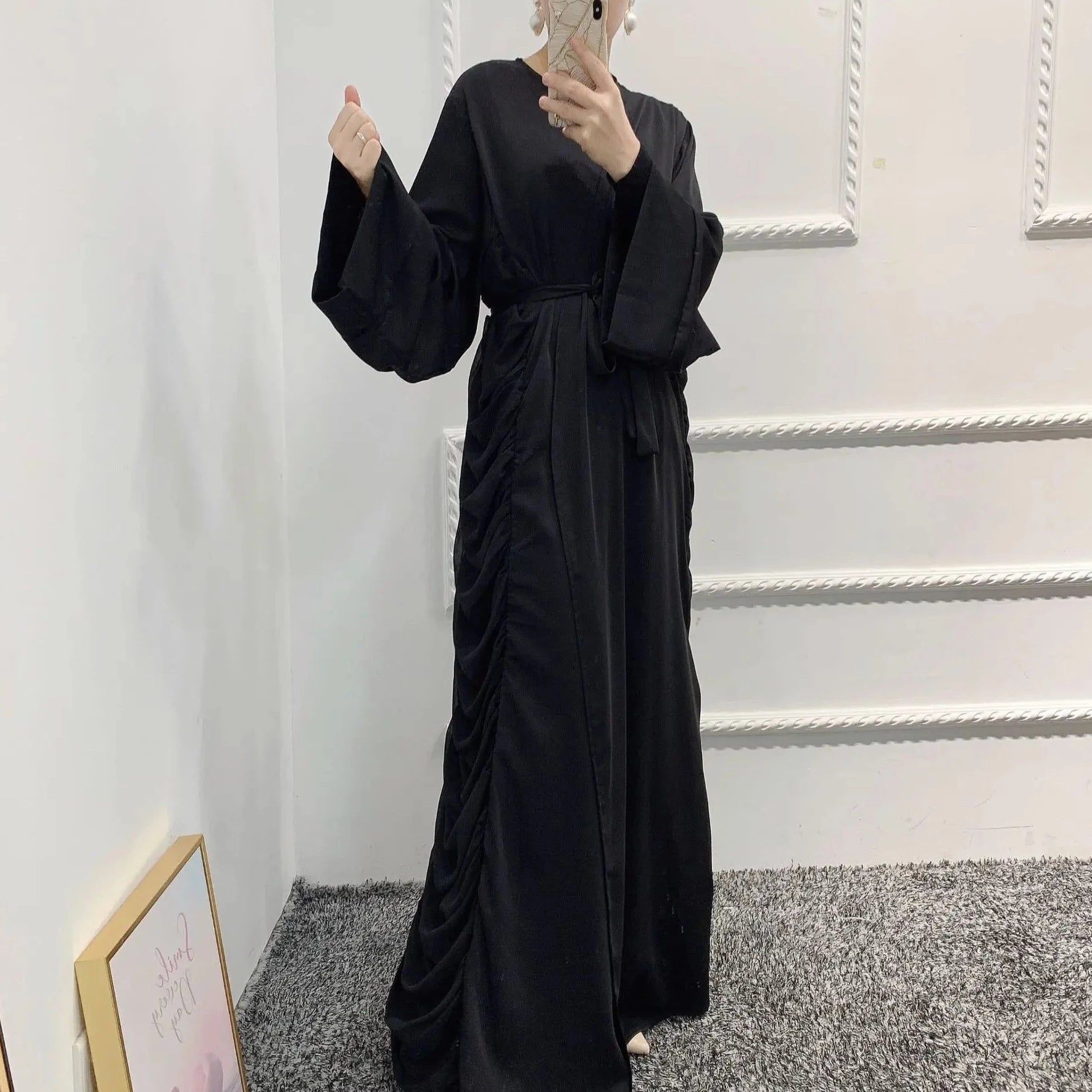 Sous les lumières des occasions spéciales, la Robe Chic Pour Femme Musulmane se distingue par ses détails uniques, tels que les drapés de voile et la ceinture assortie, créant une silhouette unique et élégante. Imaginez-vous portant cette robe, attirant tous les regards avec une allure raffinée et gracile.