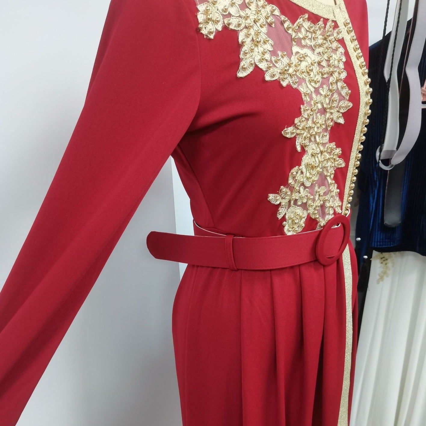 Offrez-vous l’éclat et l’élégance inégalés de notre somptueuse robe de soirée rouge et or, une pièce maîtresse qui saura attirer tous les regards lors de vos événements festifs. Conçue pour allier confort et sophistication, cette robe vous mettra en valeur tout en vous permettant de bouger avec grâce. Imaginez-vous briller de mille feux, captivant l’attention grâce à son allure raffinée et ses détails délicats. Ne manquez pas l’opportunité de faire sensation et d’ajouter cette pièce incontournable à votre garde-robe !